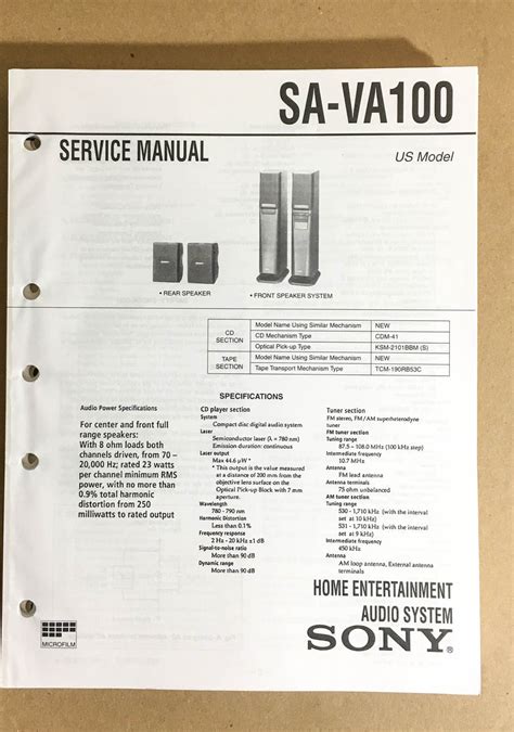 Presently you are looking with regard to an Sony Sa Va100 Audio System Service Manual example that will we provide here in some kind of document formats such as PDF, Doc, Energy Point, as well as images that will will make it simpler for you to create an Sony Sa Va100 Audio System Service Manual yourself. For a clearer look, you may open some examples below. Each of the examples about Sony Sa Va100 Audio System Service Manual on this website, we get from several sources so you could create a better record of your own.
